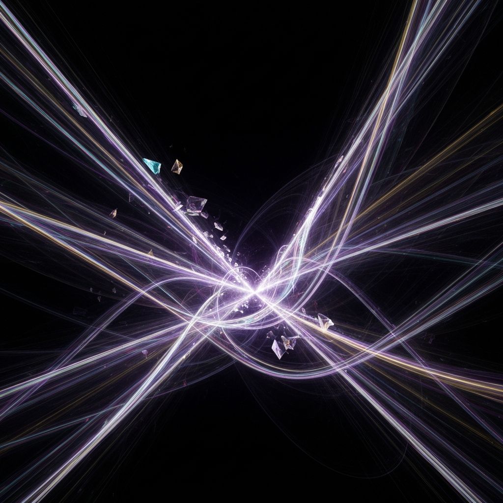 Audio: Low quantum hum, fractal tones rising